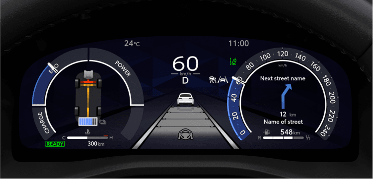 Bảng đồng hồ 12.3″ sắc nét cùng hệ thống hiển thị thông tin trên kính lái giúp khách hàng dễ dàng theo dõi, đồng thời tăng thêm vẻ sang trọng và tiện nghi của không gian nội thất.