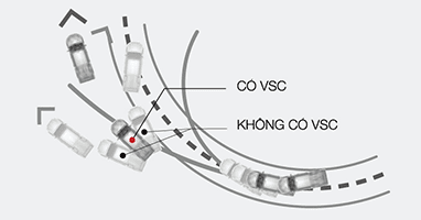 Giúp chống trượt bánh trước hoặc sau khi vào cua bằng cách giảm công suất động cơ và tác dụng lực phanh tự động vào bánh xe.